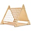 Deze grote Triangel van duurzaam hout kan maar liefst aan 3 zijden bespeeld worden. Behalve aan het rek met zijn houten sporten, kunnen kinderen ook klimmen in het klimnet en tot slot is er ook een echte klimwand met boulders waarlangs de peuters naar boven klauteren.