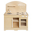 Het fraaie blank houten design zorgt er voor dat deze grote speelkeuken vrijwel overal geplaatst kan worden en bovendien naar verhouding weinig plaats inneemt. Erg praktisch bij plaatsing in de huishoek op school of in bijvoorbeeld de kleuterklassen. Deze super degelijke kinderkeuken is daarnaast gemaakt van duurzaam hout voor heel lang speelplezier. Jaar in, jaar uit.